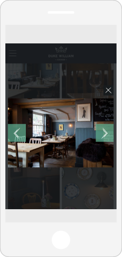 The website’s structure was led by the content, and with the goal of encouraging informed customers to visit firmly in mind. A clear plan with navigation to all services was settled on. In addition to providing relevant information to prospective visitors, we used the strong imagery provided to immerse the viewer - utilising both full screen photographs and galleries to give a sense of the pub’s atmosphere and aesthetic. A booking widget features on every page as a prompt to make a reservation, while also ensuring that this key interaction wasn’t tucked away and hard to find. Additionally, we needed to highlight the relationship between The Duke William and Mark’s other local ventures. This was worked into the main framework of the site, with a link to “explore the group” appearing alongside the top navigation and in the footer throughout.